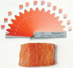 כדי לגרום לדג סלמון מכלובים להיראות ורוד כמו דג סלמון שגדל בטבע, מכניסים לאוכל של דגי הסלמון חומר מלאכותי בשם קנטאקסנטין. חשוב להדגיש שלא מדובר בצבע מאכל, אלא בצבע שנועד ומסוגל להישאר בתוך גופם. הבעיה היא שהצבע לא יודע להבדיל בין גופם של דגי הסלמון לגוף בני האדם שצורכים אותם, והוא עלול להישאר באותה המידה גם בגוף צרכני דגי הסלמון.