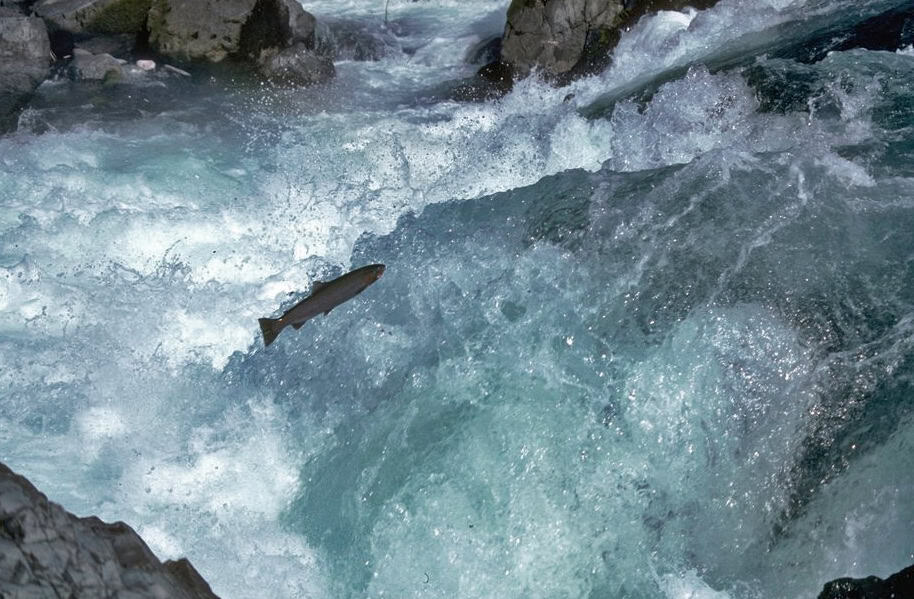 כדי לחזור הביתה מוכן דג סלמון בוגר לעשות הכל, אפילו להתיש את עצמו עד מוות