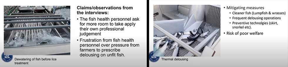 אבל התהליך הזה נוטה להרוג גם לא מעט מדגי סלמון, ולגרום להם פגיעות פיזיות ומצוקה שנמשכים גם הרבה אחרי סיום ה"רחיצה" עצמה (כפי שמתבטא למשל בירידה התלולה באכילה ביממה שאחריה).